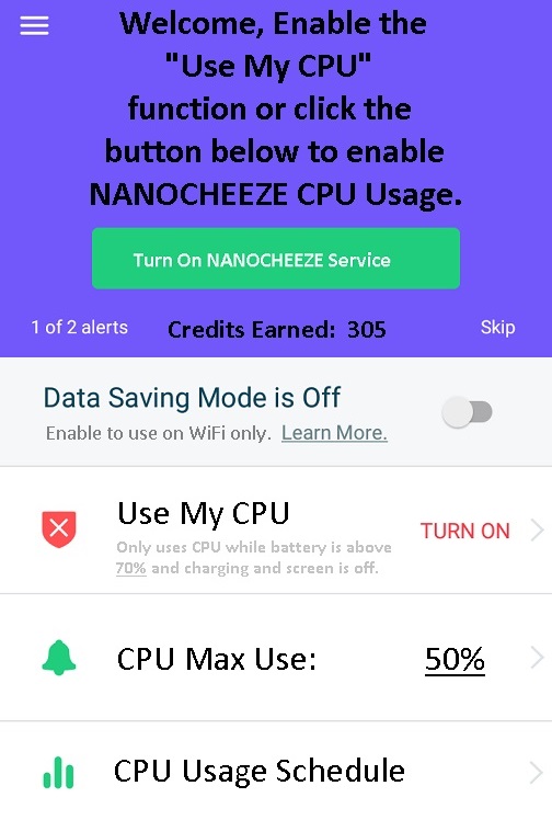 Optional aggressive mode that allows usage of CPU while running on battery power with the ability to set a lower CPU usage threshold versus when in charging mode.